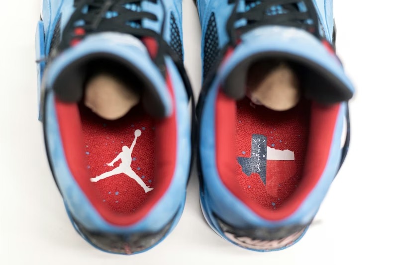 Friends and Family release of the Travis Scott Cactus Jack Jordan 4, with Nike Air replacing the Jumpman found on the heel of the general release.